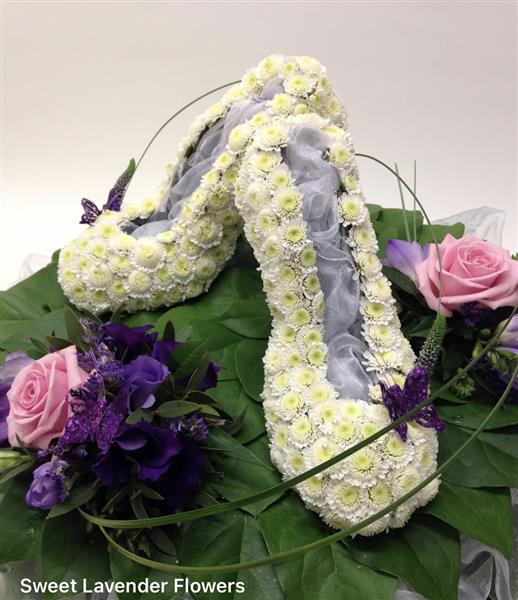 A perfect tribute for the shoe collector. This tribute is made and cut out of floral foam so is a unique piece. Please call to discuss if you require a different design and/or colour.