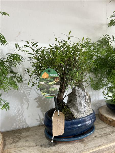 The Syzygium Bonsai is part of the Myrtle family valued for its small shiny leaves, delicate white flowers and cherry-like fruit. Also known as a symbol of beauty, youth and renewal. It can be grown indoor or outdoor.